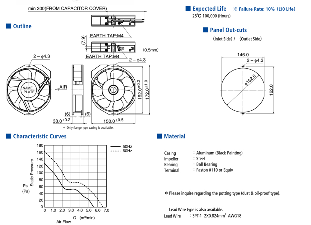 NMB-MAT,Quạt loại nhỏ gọn,172*150*38mm,230V,3200RPM,35W,360.4m³/h,50dB