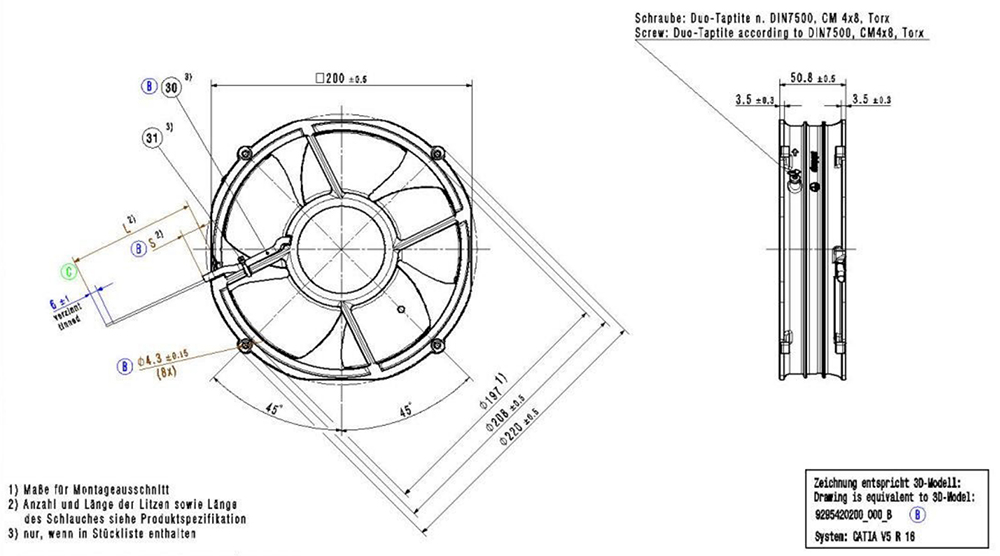 ebm-papst,Quạt loại nhỏ gọn,2218F/2TDH4OR-227,1230m³/h,103W,74dB,6500RPM,1180Pa,48V,φ220*50mm